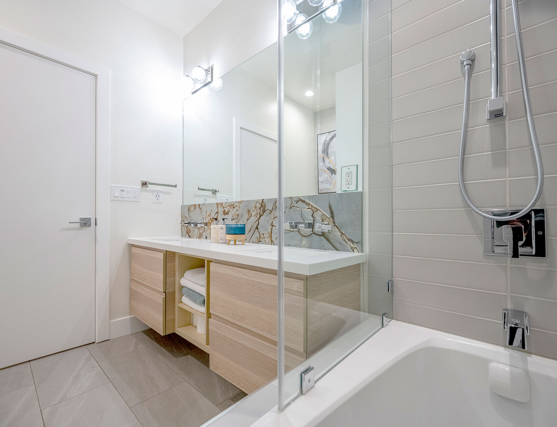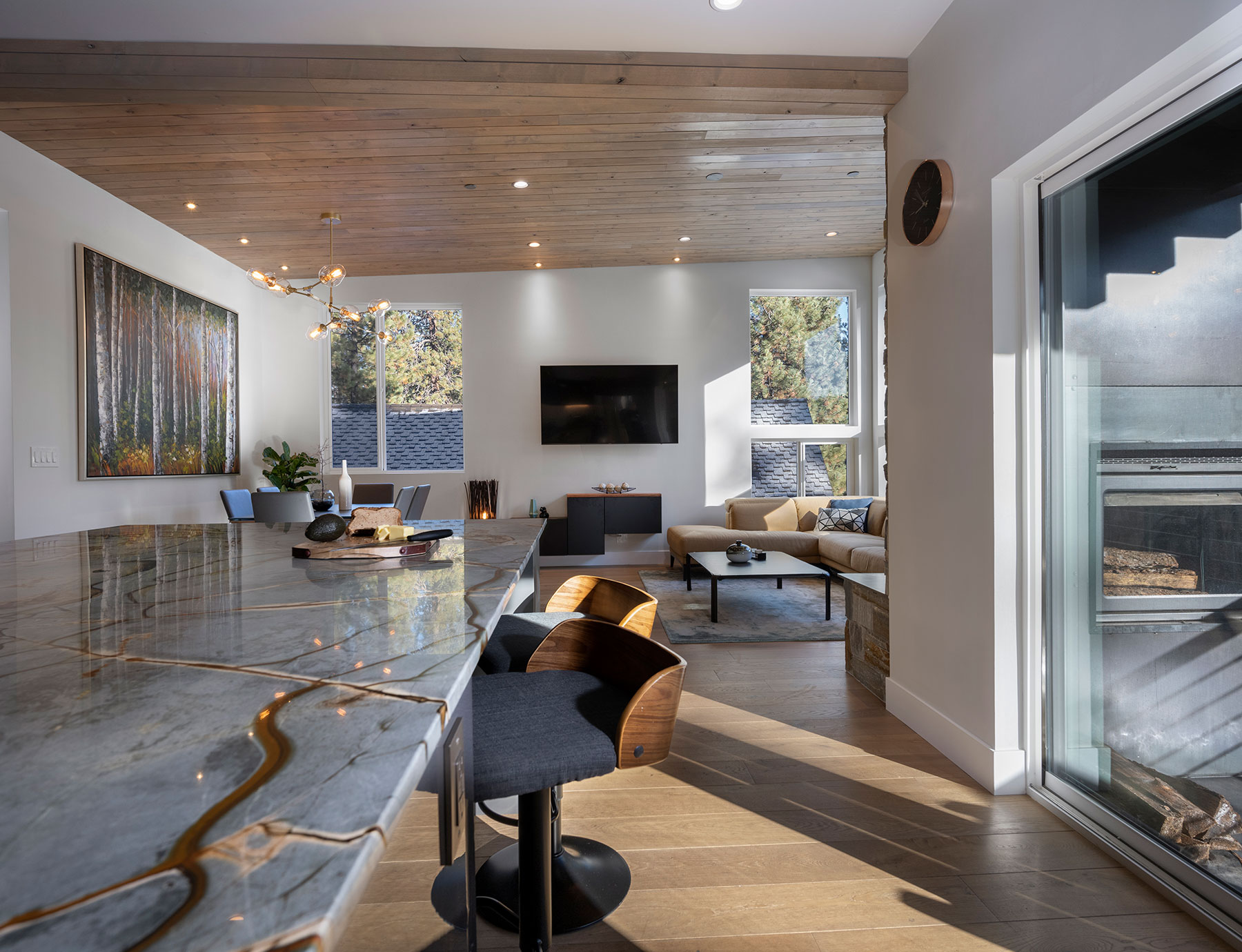 O’Malley 1.0 is a luxury modern home with an open concept floor plan where you can enjoy having a cup of coffee or a glass of wine on the front balcony. This home features real hardwood floors, alder wood ceilings, and natural stone double-sided fireplaces. Large windows in every room of the home give great views and plenty of natural light. Coming home should be like a vacation. A model with space that helps you dream and your mind to wander.